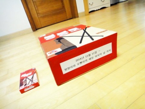 최대한 빼빼로 박스 느낌주려고 박스 옆쪽에 입구를 만들었답니당+_+ㅋ