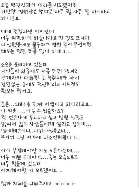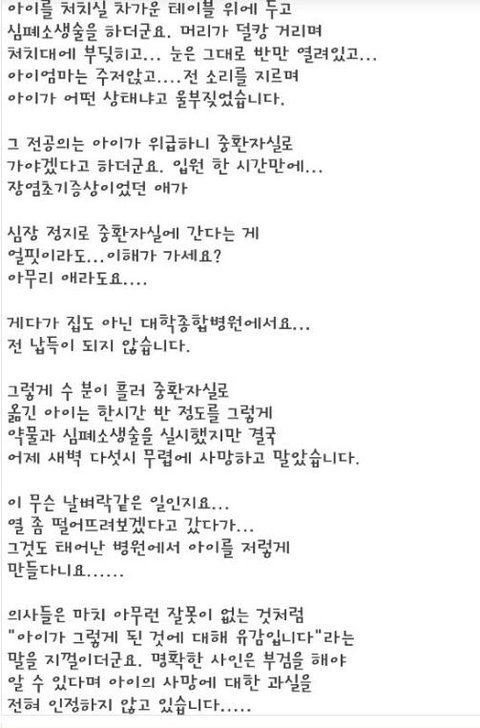 더는 의료과실로 인한 아까운 우리 아이들의 죽음을 막아야 합니다.