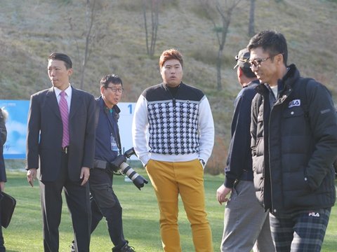 야구 유니폼이 아니라 이렇게 골프웨어를 입은 모습도