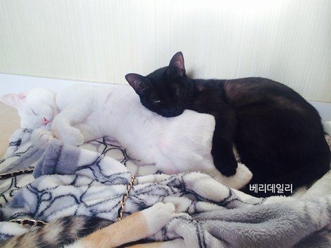 둘이 서로 사랑해요 ㅎㅎㅎ 저한테 애교한번 부린적 없는 까모는 둥둥이에게는 매일 애교부리네요