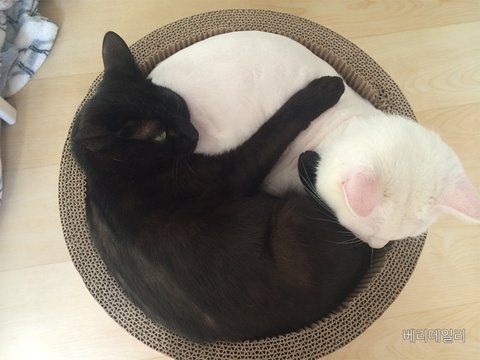저는 블랙 앤 화이트 두마리의 고양이를 키우는데