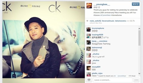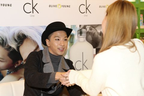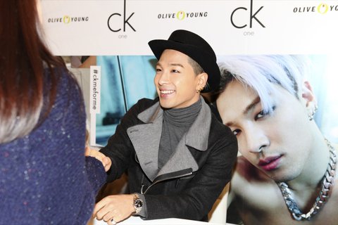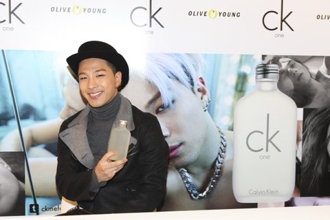 CK one 향수를 들고 포즈를 취하고 있는 빅뱅 태양!