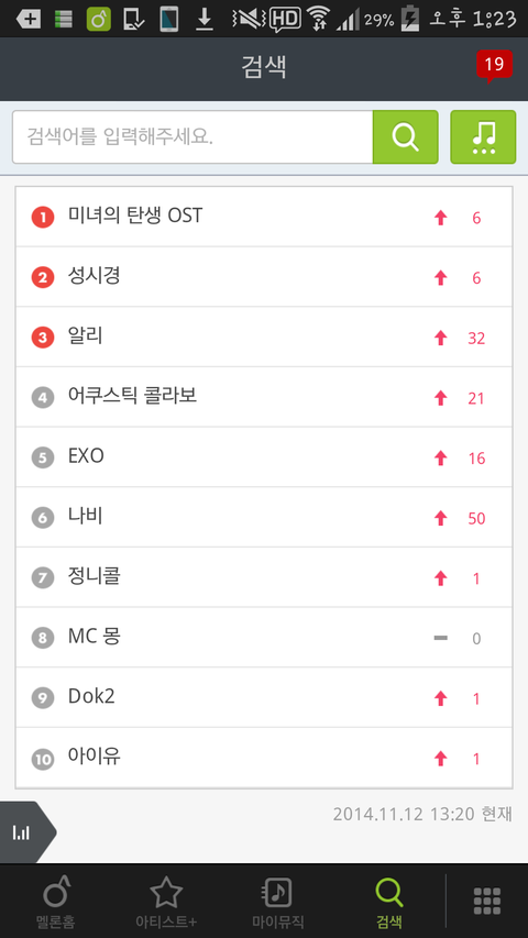 11월 12일 한시 이십분 멜론실검