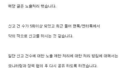 멤버에 대한 좋은 글이였고 조회수도 많았는데 글삭당해서 문의했거든.