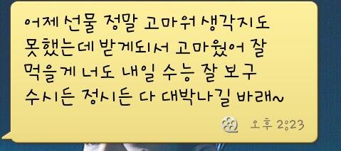 널 좋아한다 이런말같은거 전혀 안쓰고, 정말로 수능잘보고 수시도 대박나라. 이런내용이었습니다.