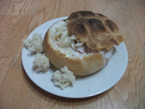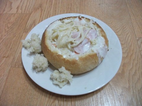 딱딱한 하드롤안에 고소한 크림스파게티를 쏙!