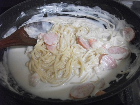 스파게티 만들어서 넣어주면 끝이랍니다~~