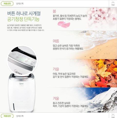 버튼 하나로 사계절 내내 공기정화 기능을 사용할 수 있어서 더 실용적인 거 같아요~