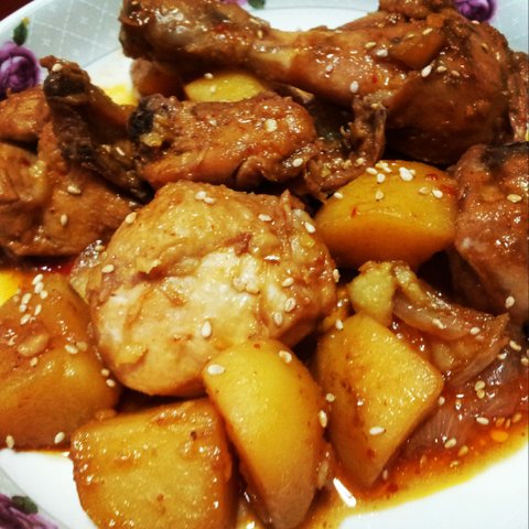 간장을 베이스로 한 간장닭볶음탕이에요.