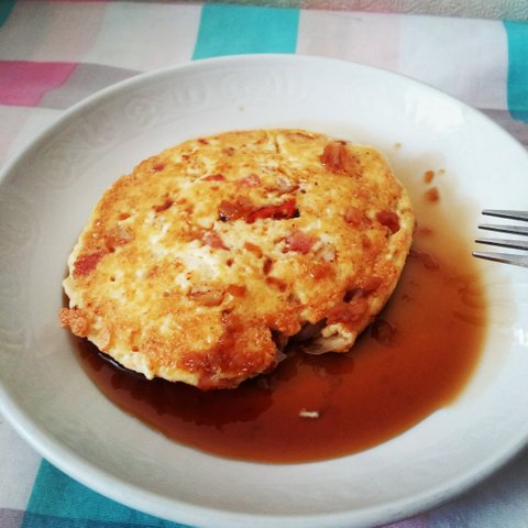 계란 부쳐서 그 위에 돈까스 소스랑 케첩 뿌려줬어요.