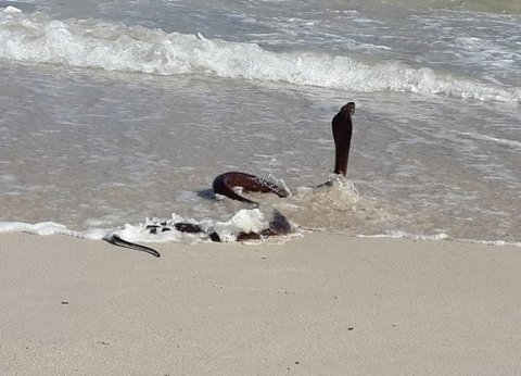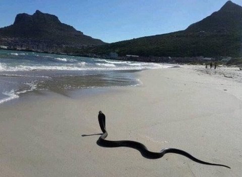 1.8m 길이의 거대 케이프 코브라가 해당 해변에서 어슬렁거리고 있다