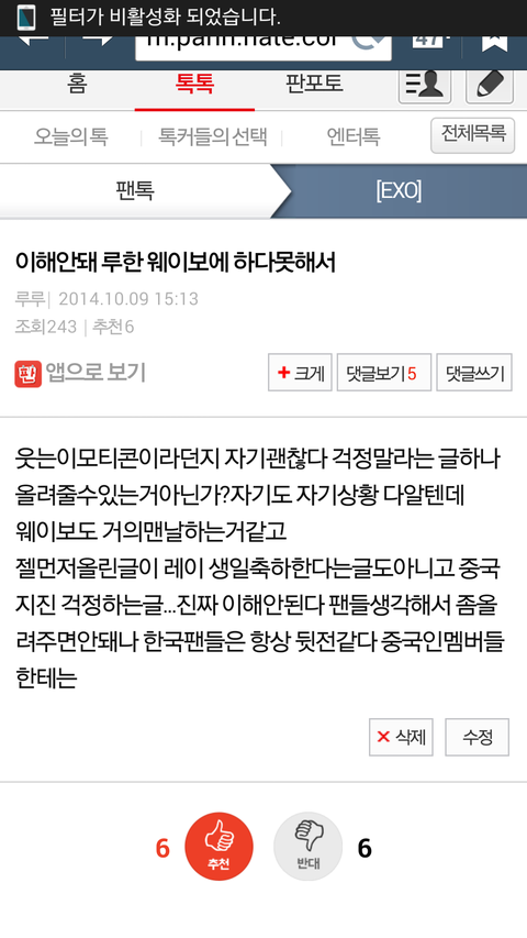 이거내가 ㅋㅋㅋ루한탈퇴하루직전에쓴글인데