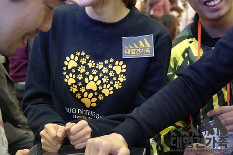 이번에 제작한 캠페인 티셔츠입니다. 대형견가족 패치는 탈부착이예요.