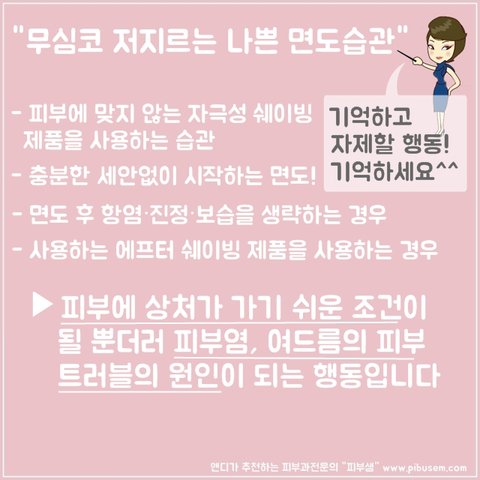 바로 올바른 면도습관에 대한 TIP이니 꼭 한번 읽어보시고