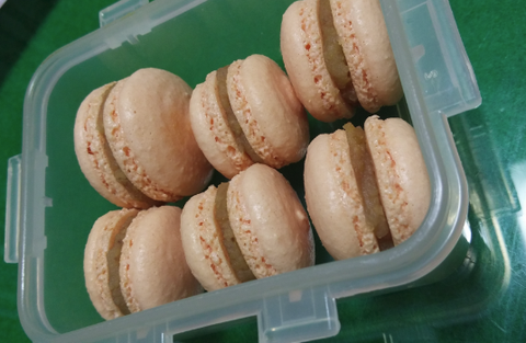 사과마카롱- 버터크림과 사과잼을넣은 사과마카롱! 얼룩덜룩하지만 마블이 실패한거예요ㅠ