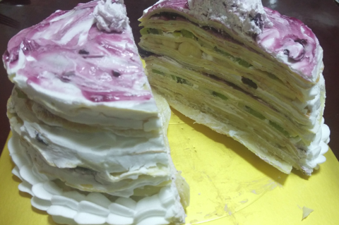 블루베리크레이프케이크- 상설동아리에서 만든 크레이프케이크입니다~ 과일을넣어서 상큼하고 달고 쫀득쫀득했어요 ㅎㅎ