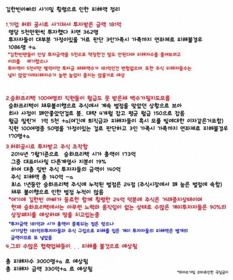 승화프리텍이라는 꽤 유명한 회사였습니다. 실존까지는 모르겠고 잘 모르는 저도 들어본적 있으니까요 그런 회사를 주가조작으로 돈을 사기 쳐 끌어모은건 중죄이므로 상응하는 대가를 치뤄야하는건 너무도 당연한 일입니다. 그 아들인 비아이.. 피해자들이 연좌제로 피해를 입었으니 가해자도 연좌로 그 가족들 또한 같은 고통을 짊어져야하는것은 어쩌면 도리가 아닐까 하는 생각도 드네요. 조선시대에 중죄자는 3대를 벌하고 멸하고 했죠 이게 왜 그럴까요? 피해자들의 고통과 연좌된 가족들의 고통을 생각해서 그랬던거겠죠. 당분간은 조용히 있는게 아비를 잘못 둔 가족으로써의 운명이겠네요.