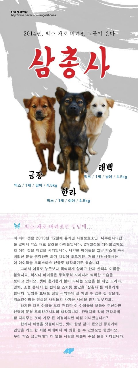 입양안내 및 신청서 : http://cafe.naver.com/angelshousa/8579