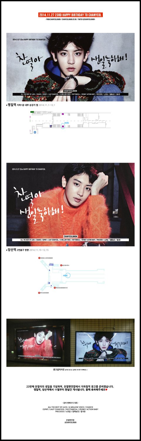 찬열 연합 생일광고 당산역 떴댜