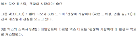 전에 여기서 이상형 김강1우는 디오 캐스팅 전에 얘기한거래서그말 믿고있었는데걍 방금 검색해봤거든? 이상형 기사들이 올해 3월 5일 6일 이렇게에 뜨는데디오 캐스팅 기사 뜬게 3월 3일이야 극중이름은 나중에 나왔던거아닌가 하고 기사봤더니캐릭터 한강우은 어떤 역할이다 하면서 강우 이름도 나와있음...........ㅅㅂ............