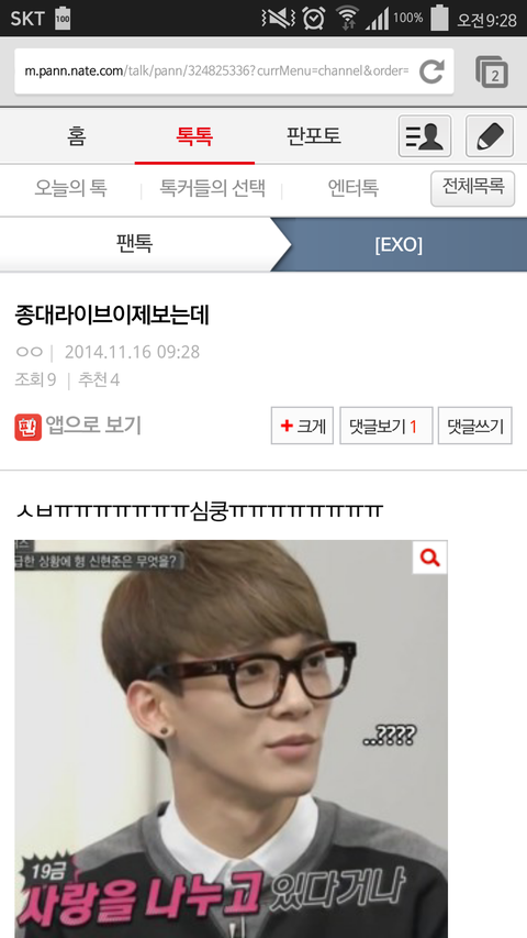 지금 일어나서 판이나 봐야지.하고 맨위에거 눌렀는데
