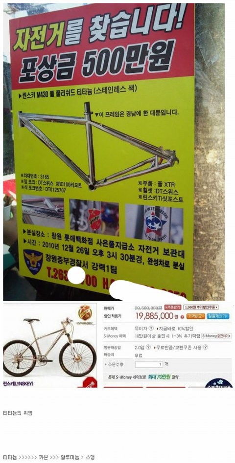 자전거 찾아주면 500만원 드립니다