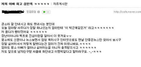 독재자딸이라고 하는데 스스로 대통령에 올라간거 아니잖아요 주권 국가에서 국민들이 뽑아줘서 대통령 된거잖아요 제가 봤을땐 누가 대통령 되도 욕먹는건 마찬가지인거 같습니다 노무현때나 이명박때랑 비교하면 지금 대통령이 욕먹는거는 애교수준이죠