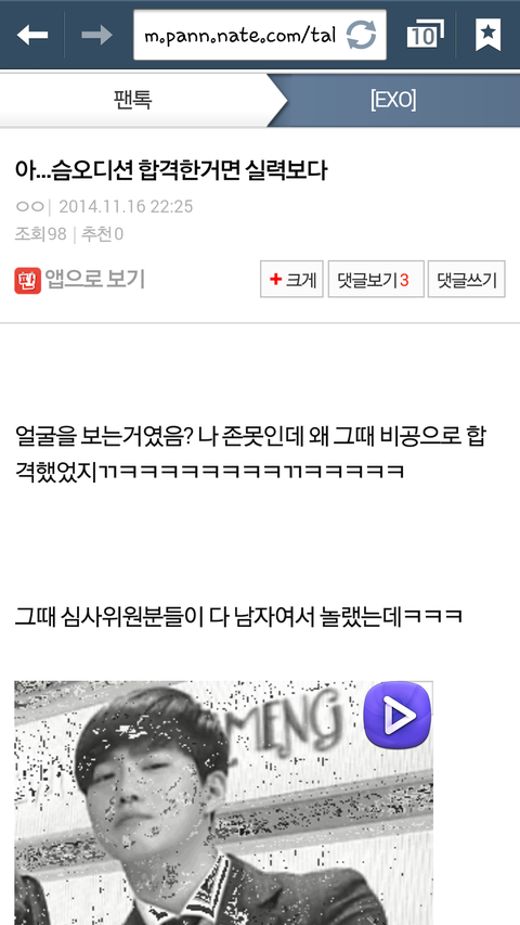 슴오디션 합격했다는 글쓴아 잠깐들어와줘