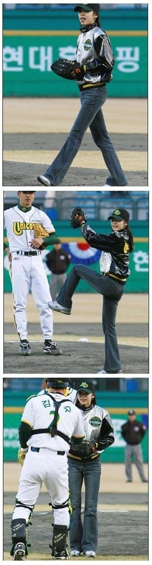 17세의 차세대 피겨요정 김연아가 시구를 하고있다...