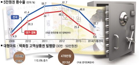 특히 대구경북 지역은 5만원 회수율이 5%...;;