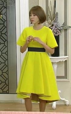 노란 샤틴 원피스 입었는데 늘씬한 몸매로 완벽하게 소화해냄!