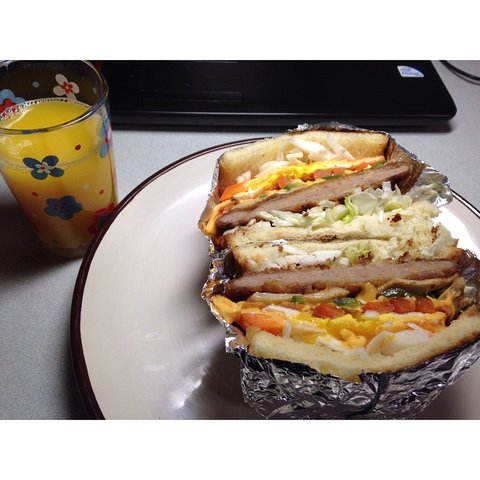 야채와 일본식 돈가스를 넣어 만든 샌드위치