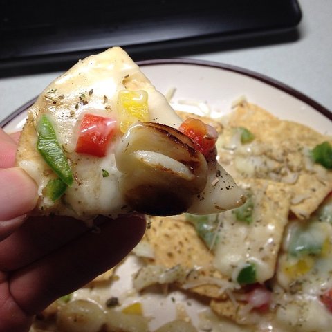 구운마늘을 으깨어 올려먹는 치즈나쵸