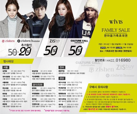 11/20(목)~24(일)까지.. 지센/지스바이/컬쳐콜 여성브랜드 패밀리세일을 시작합니다.