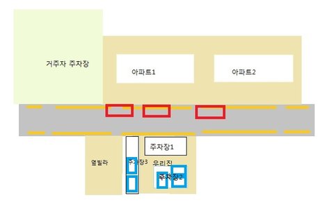 (파랑색 네모=주차된 차)