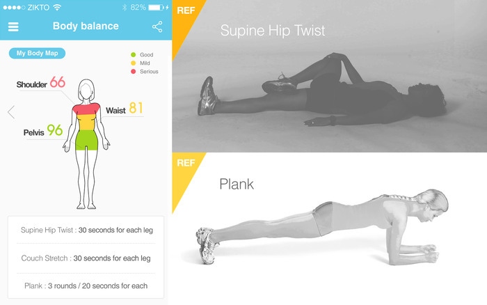 Arki를 양쪽 손목에 번갈아가며 착용한 채 걸으면 좌우 및 부위별 신체 균형을 확인할 수 있으며 알맞은 스트레칭 방법도 알려 준다.