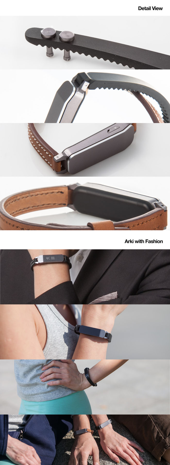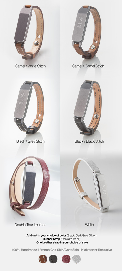 현재 킥스타터에서 소개하는 내용에 따르면 Arki는 실버, 다크 그레이, 블랙의 세 가지 색상으로 출시되며 손목줄은 고무, 6가지 디자인의 가죽, MOREE의 팔찌줄로 선택할 수 있다고 한다. 가죽줄과 MOREE 팔찌줄은 손으로 직접 만들어진다. 도트로 표현되는 LED 디스플레이와 함께 보고 있자니 기능을 떠나서라도 액세서리나 시계 용도로만 사용하기에도 손색이 없어보인다.