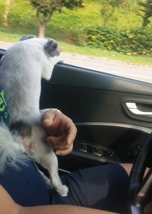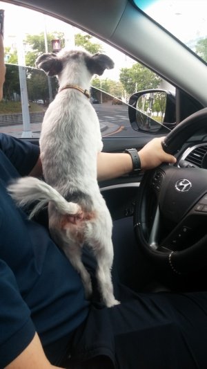 외출할때면 항시 저렇게 운전석자리로 가서 팔위에 온몸의 체중을 싣고 있따...ㅜ.ㅜ