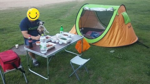 집근처에 나름 캠핑나온, 깜비는 상앞에 족발에 관심이.ㅎㅎ