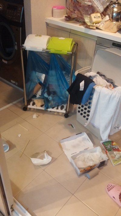 분리수거에 햄빼낸 캔이나 기타 음식물냄새로 인해 사람없을때 덮친다..ㅜ.ㅜ