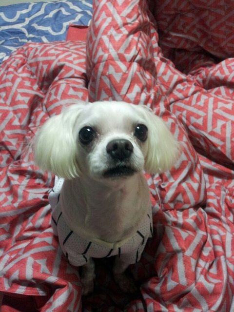 데려와서 1달정도 된듯, 털이 조금 길고, 나름 때때옷도 사입히고,^^