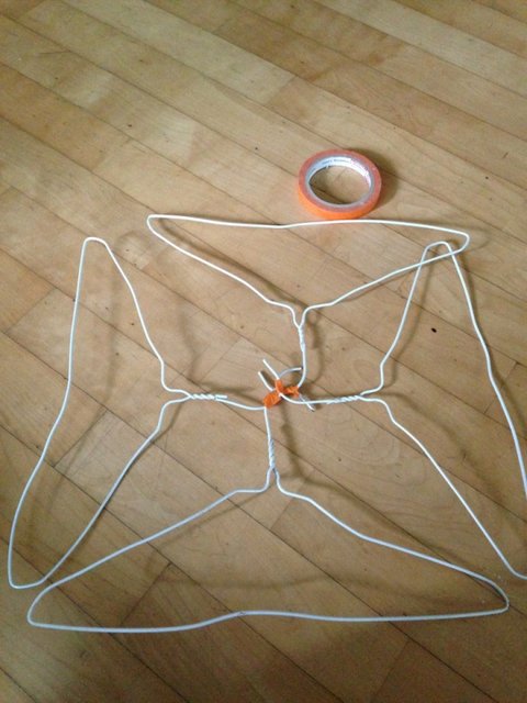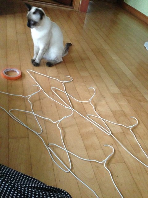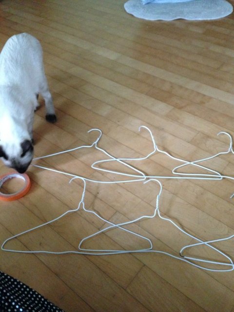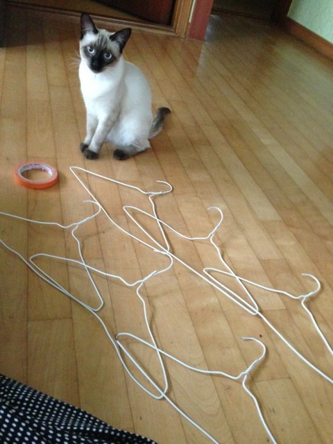 이렇게 옷걸이와 고정시킬 테이프(전기테이프)를 준비해요