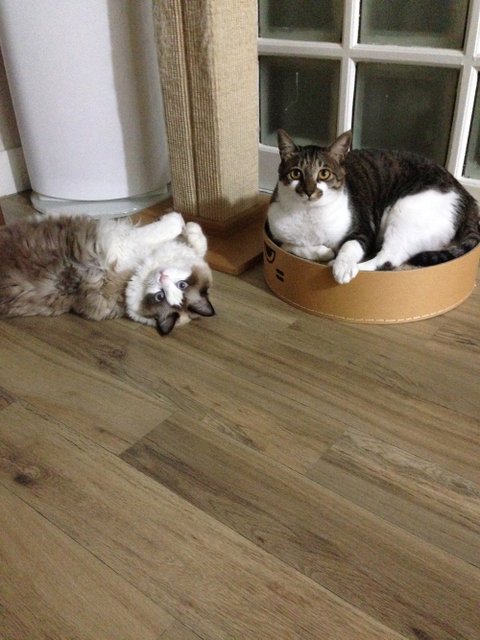 라떼는 아기냥일때부터 탑이를 줄곧 쫒아다녔어요.