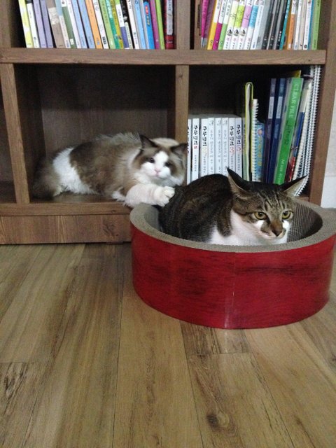 둘이 가까이 있는게 기특해 사진을 또 찍고있었는데..