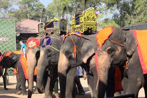 쇼가 긑나면은 코끼리와 함께 사진을 찍을 수도 있고 만져볼 수도 있는 시간을 줌