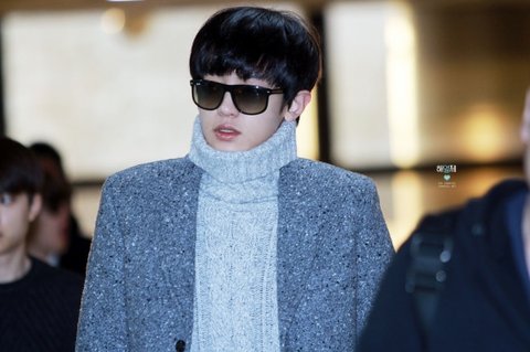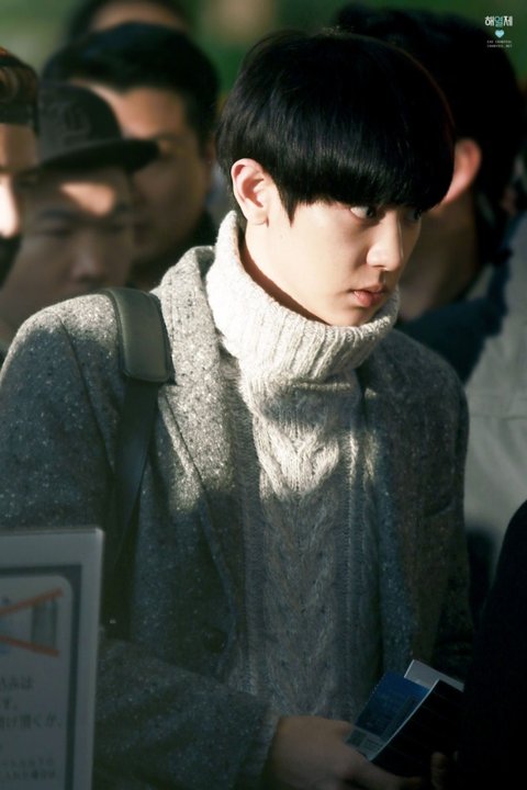 목폴라니트에 코트입고 한껏멋낸 엑소의 찬열