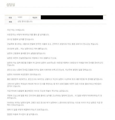 솔직히멍청한게맞다 지팔자 지가 꼰다고 저건 보는눈이 없는 거다 아무리 좋은말로 포장해봤자 혼인신고도, 결혼도 안하고 사는건 그냥 동건데 뭐가 '살림을 합쳐'인지. 동거하면서 임신한건 혼전임신인데 호칭만 남편이라 하면 부부인줄아나. 남자는 개쓰레기고 여자는 좀 안타깝지만 보는눈좀키워야할듯