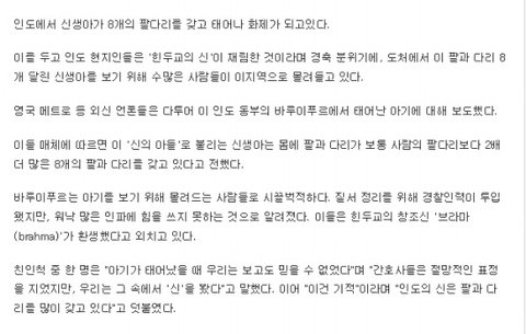 팔과 다리 8개나 달린 아기 탄생