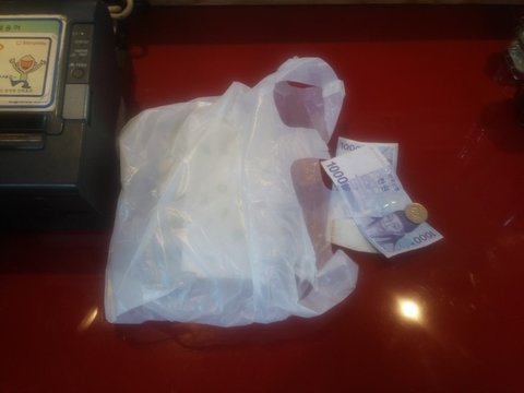아쉽게도 캡쳐 장면은 못올리고 그여자분이 던져준 돈과 봉지 입니다.