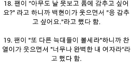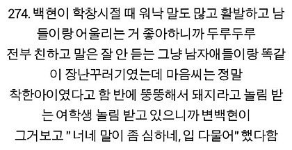 근데 백현이 판은 그만 보는게 나을듯.. 다른데선 별로 안까이고 여기서만 까이는데 너무 여기만 보고 그거에 매몰되는거같음. 여기는 백현..